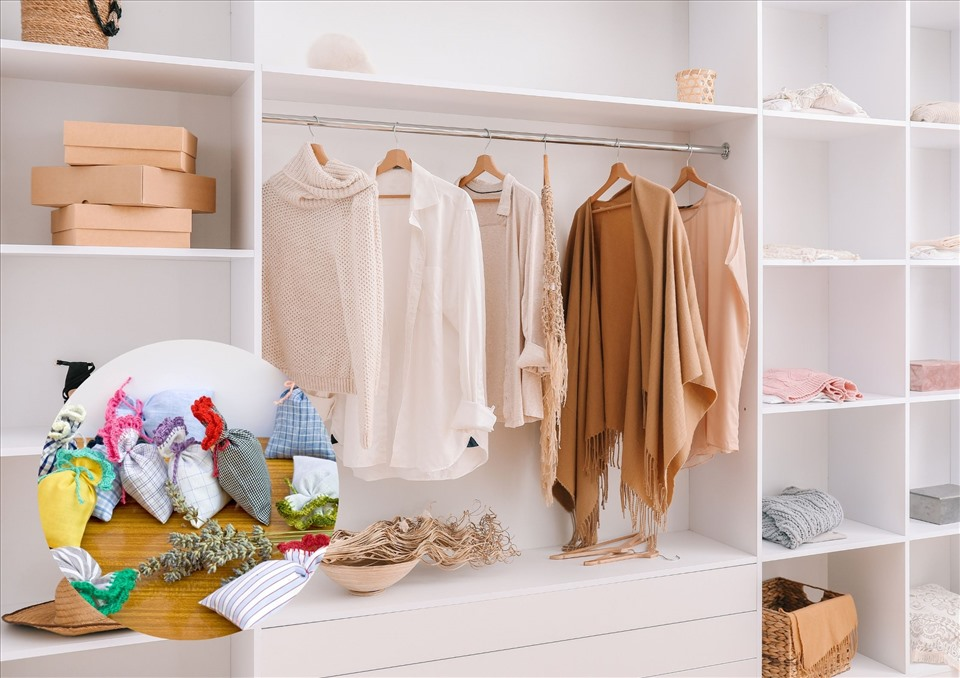 - Cho túi thơm hoặc viên khử mùi vào tủ quần áo.
