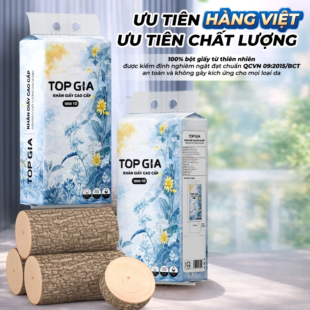 - Khăn giấy TOP GIA Mộc An – mềm mịn như bông, an toàn cho da, tiện lợi cho cả gia đình