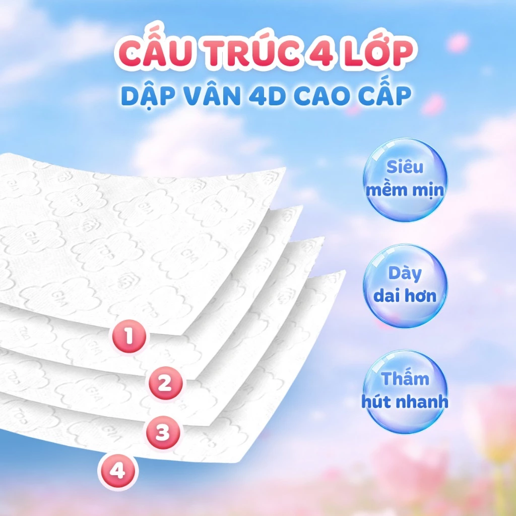- Đạt tiêu chuẩn 4K: không bụi giấy - không huỳnh quang - Không chất tẩy trắng - Không gây kích ứng da