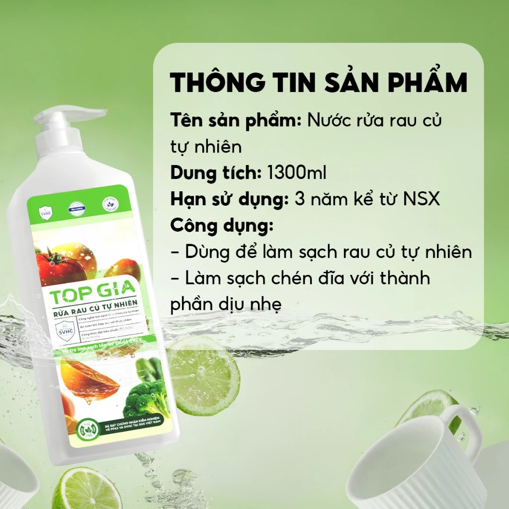 - Tên sản phẩm: Nước rửa rau củ quả TOPGIA